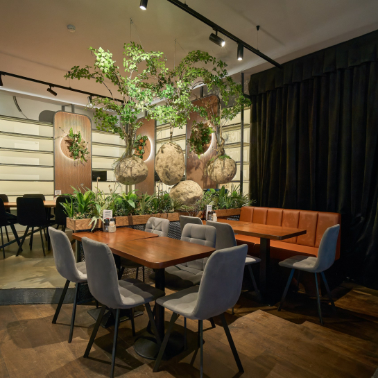 On the menu there are famous craft burgers coexisting with gastronomic signature items. Each new season of the year is marked by a new menu, the dishes of which are inspired by seasonal produce and mood. An extensive bar menu offers a variety of spirits, wines from different countries and cocktails.